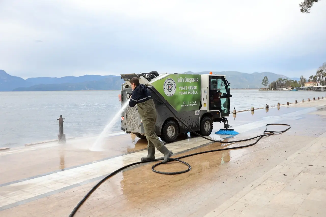 Çalışmalar kapsamında kordon boyu, ana caddeler ve ara sokaklarda yıkama ve temizlik işlemleri yapılarak biriken çamur, yosun ve çeşitli atıkların temizlenmesine yönelik çalışmalar gerçekleştirildi.